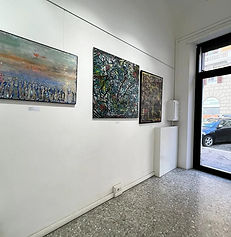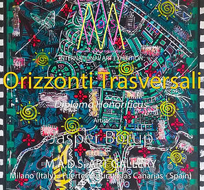 2022 "ORIZZONTI TRASVERSALI" at M.A.D.S Art Gallery, Milan, Italy, and Fuerteventura, Spain. Featured artworks: "Hiding Behind a Living Mask," "Anxiety," and "Amazing People."